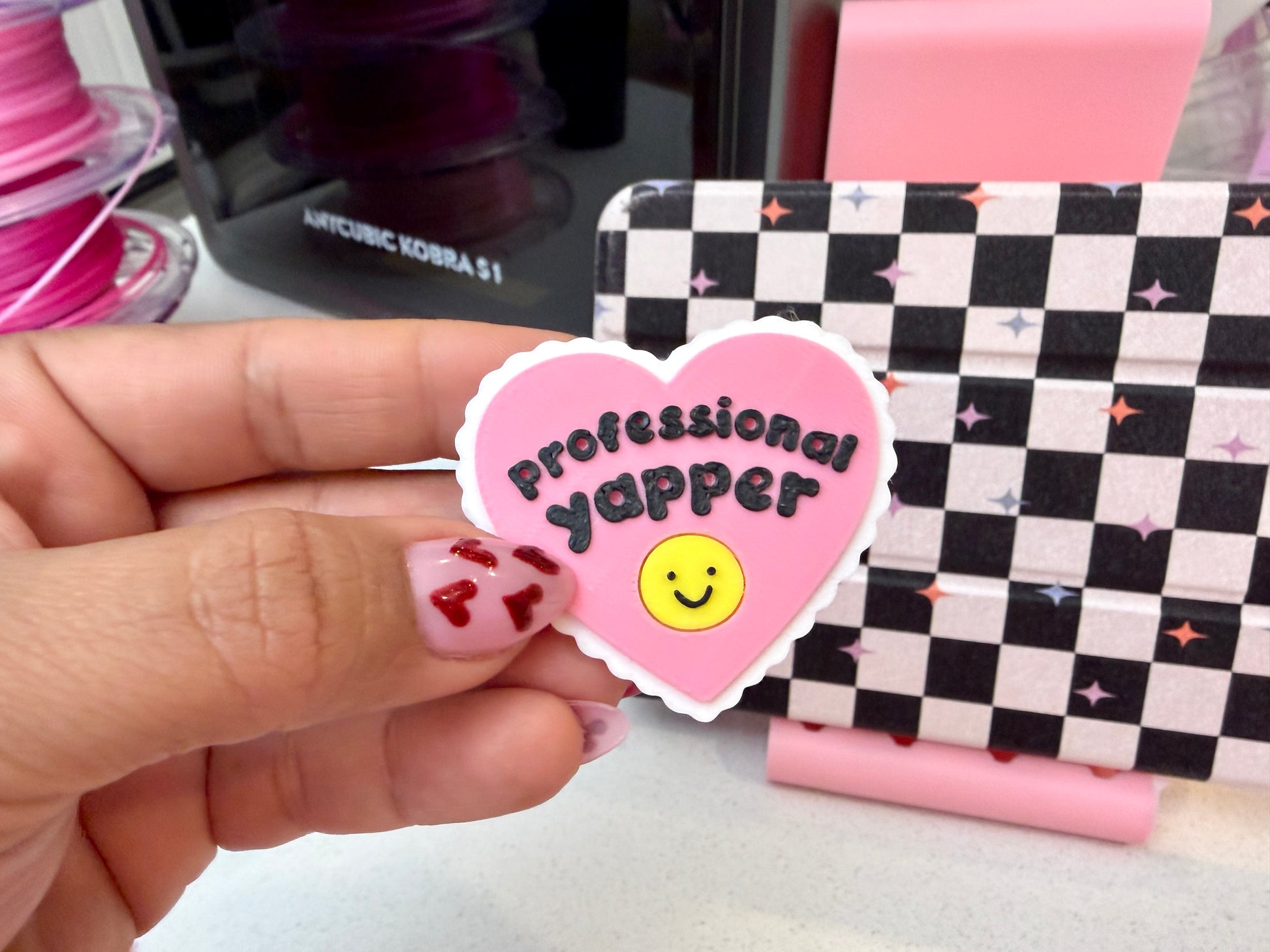 This listing is only for the 3d charm that you glue on to the badge reel hardware. Buy our designs to assemble and put together for your stores and pop-ups!